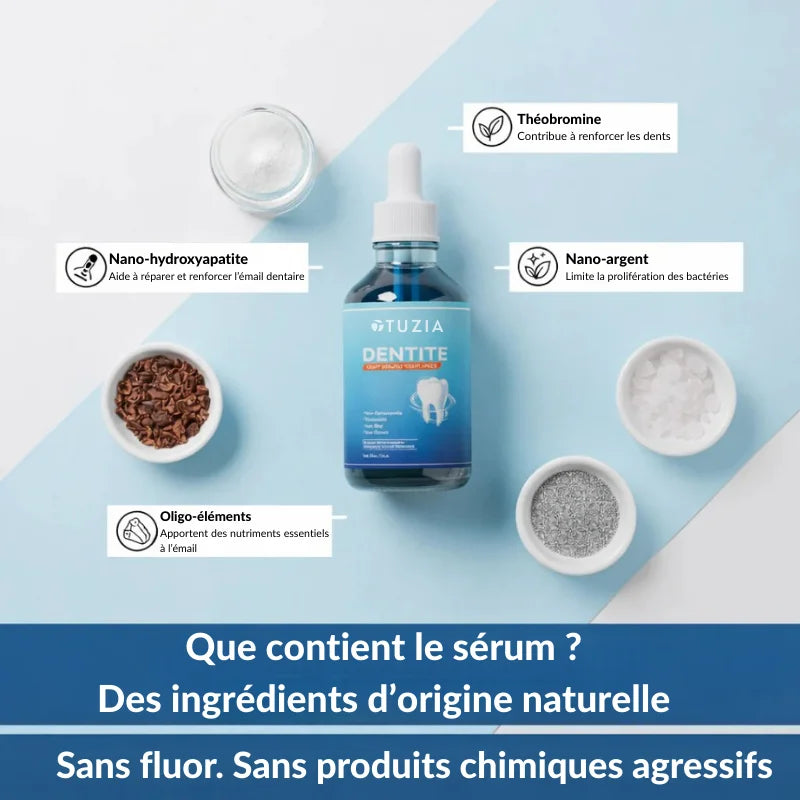 Ce sérum aide à apaiser la sensibilité dentaire en renforçant la barrière protectrice naturelle de l’émail.
